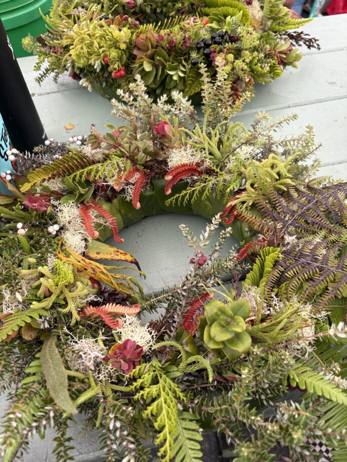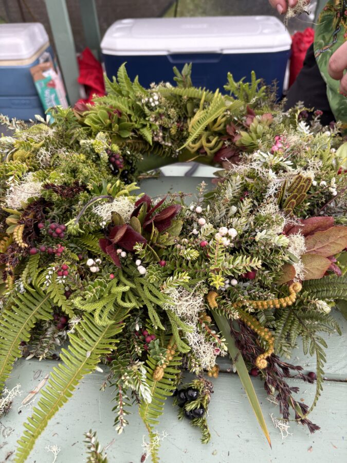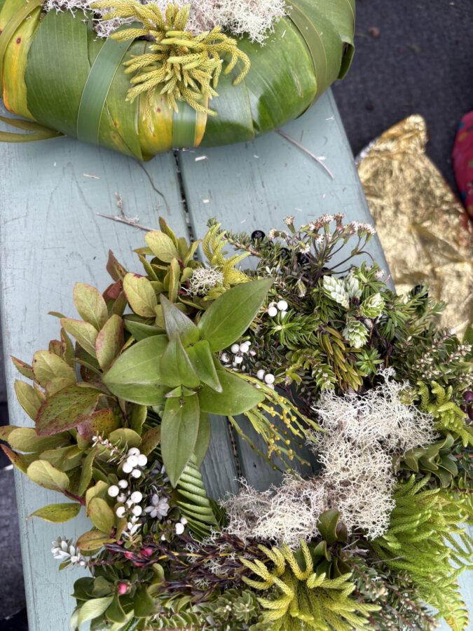 さて、ヒロに戻って、お昼持ち寄りで、リース作り開始。