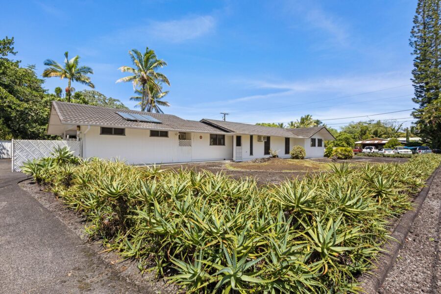 今は水が入ってないですが、プールもあります。上から見ると大きさが伝わりますね。この近辺では他より倍の広さの土地を所有することができます。お家の家具は全てついてくるので、ご自身の持ち物だけで、すぐに生活が可能です。場所はパホア地域になります。